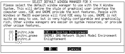 You'll be given a list of all the desktops and window managers installed. Just select the one you want from the list. Each user on your system will need to run this program, since different users can use different desktops, and not everyone will want the default one you selected at installation.